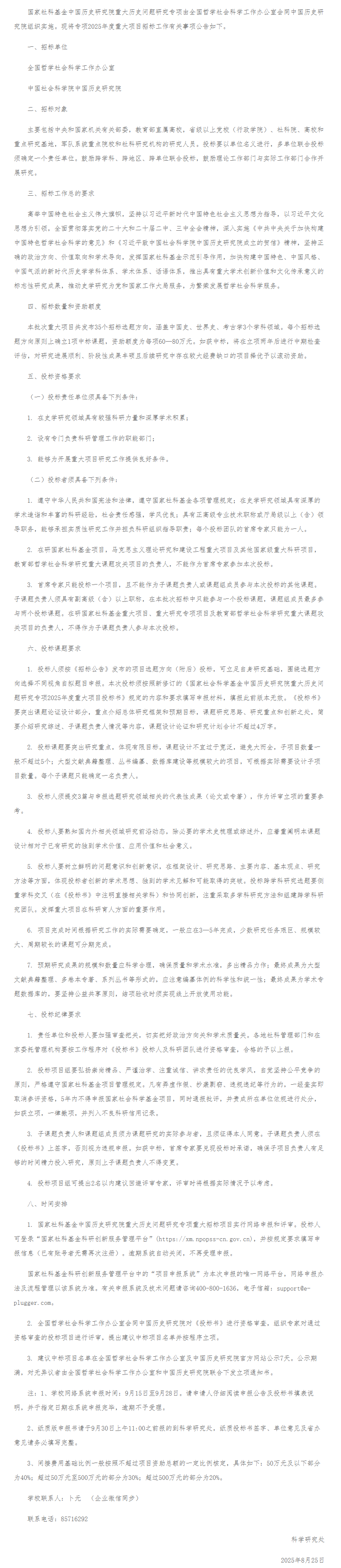 国家社科基金中国历史研究院重大历史问题研究专项2025年度重大项目招标公告