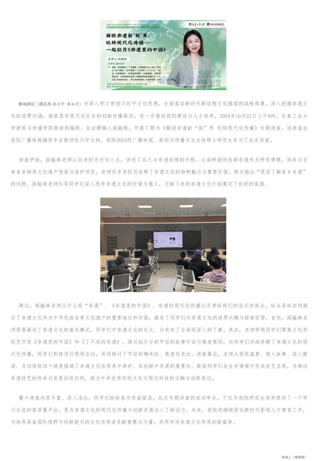 best365英国在线体育官网专业硕士培养系列讲座——解锁非遗新“视”界 玩转现代化传播