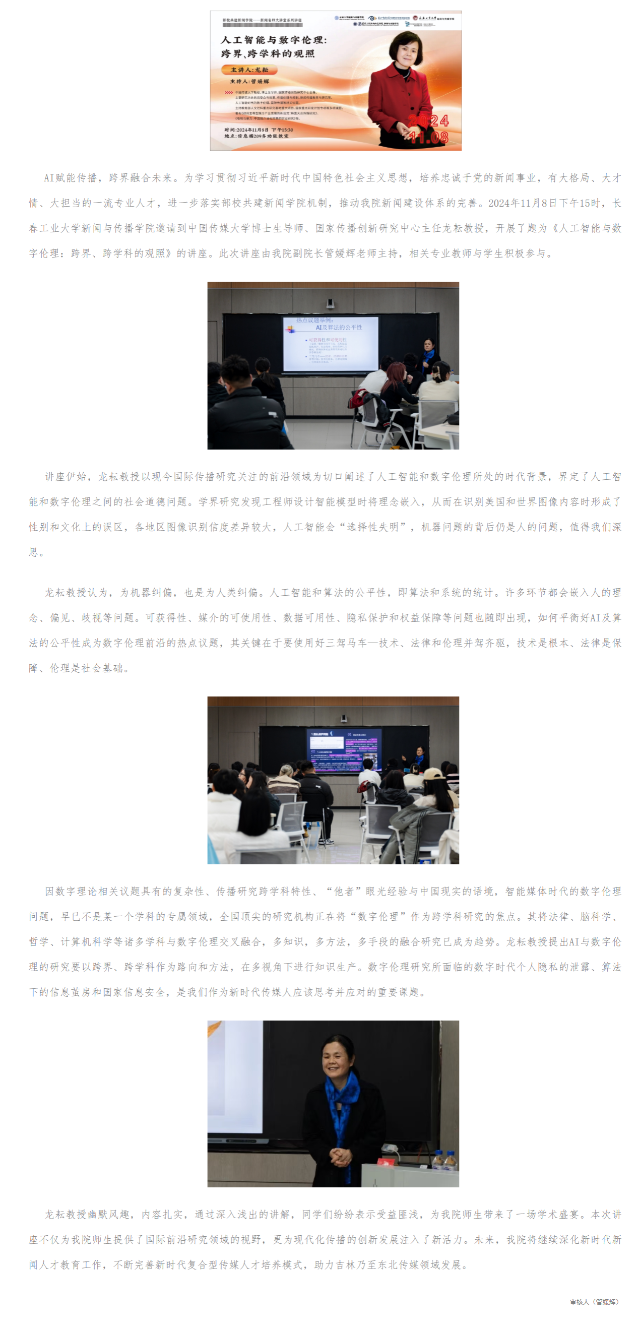 best365英国在线体育官网部校共建新闻学院——新闻名师大讲堂系列讲座《人工智能与数字伦理:跨界、跨学科的观照》