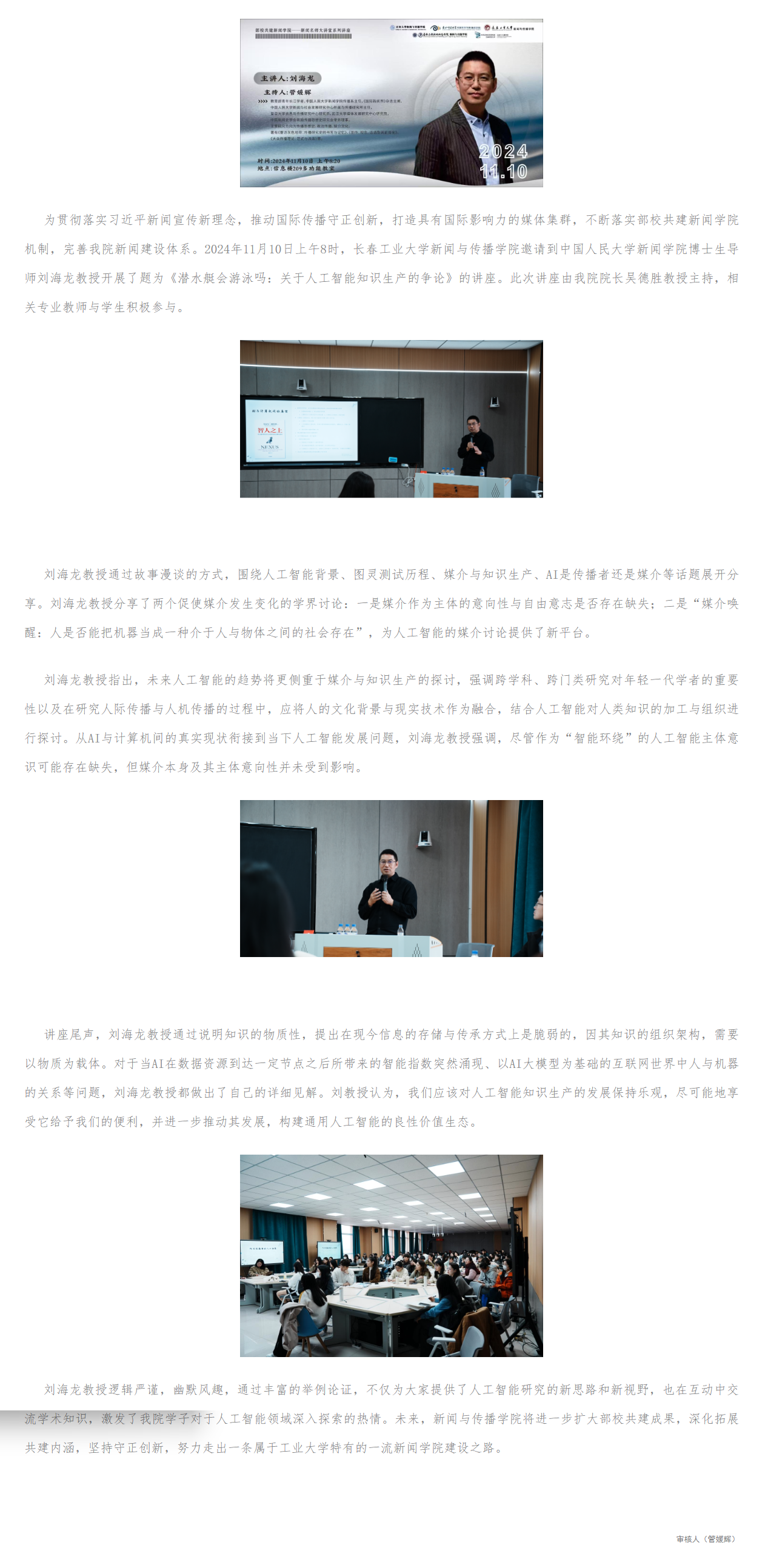 best365英国在线体育官网 部校共建新闻学院——新闻名师大讲堂系列讲座《潜水艇会游泳吗:关于人工智能知识生产的争论》