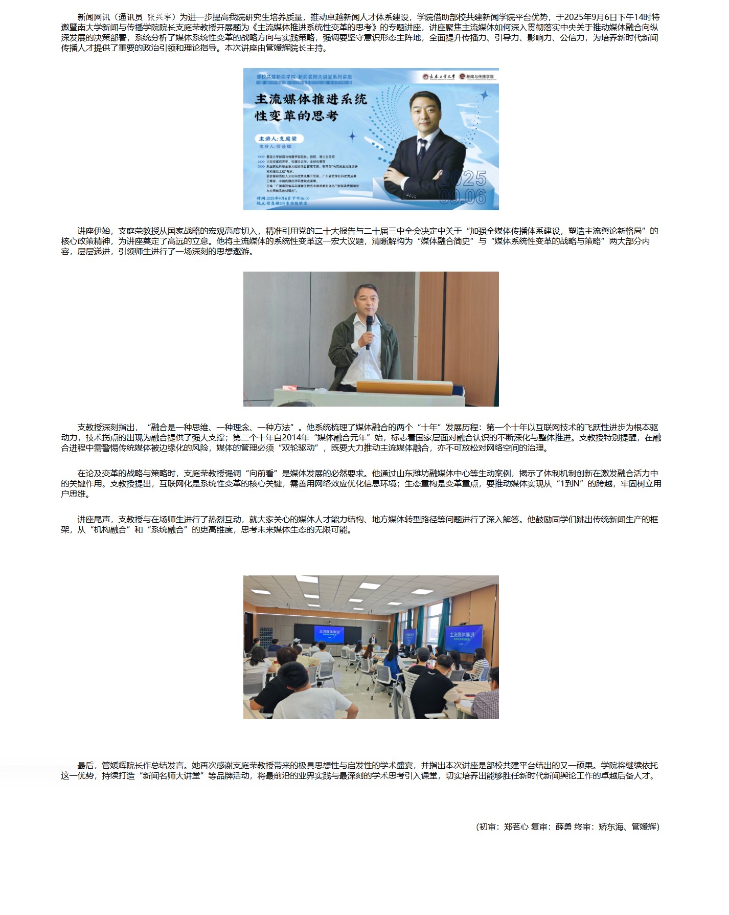 best365英国在线体育官网 部校共建新闻学院——新闻名师大讲堂系列讲座《主流媒体推进系统性变革的思考》
