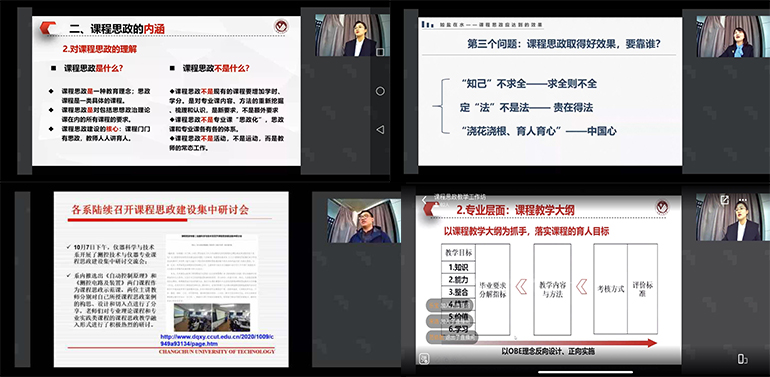 主讲教师们结合自身工作经历的感悟和课程思政实践,讲解课程思政的内涵与意义,思政元素的挖掘与提炼,通过深入浅出的教学引导、生动鲜活的教学案例分享,进一步激发教师参与“课程思政”建设的积极性和主动性,引导教师们深入理解课程思政的内涵和意义,掌握结合专业知识点进行思政元素挖掘方法,进一步提升教学案例设计水平与能力。
