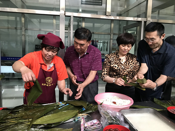 在组织全院教师开展包粽子活动的同时,各部门负责人也分批将包好的粽子送到有课不能参加包粽子活动教师的手中,让他们充分感受到来自学院的关怀。