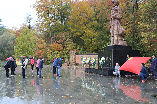 10月1日,信息传播工程学院的教师党员们来到杨靖宇将军蒿子湖密营,在杨靖宇将军纪念碑前,通过敬献鲜花、重温入党誓词等形式向革命先烈杨靖宇表达敬意、寄托哀思,以教育引导广大教师党员不忘传统、继承遗志。学院党委书记李仲德在活动现场发表了讲话,他指出缅怀英烈是为了找回初心,继续发扬抗联精神,在中国特色社会主义建设事业新的长征中继续前行。他要求广大教师党员要以饱满的热情投入到教学科研和人才培养工作中,以优异的成绩迎接党的十九大召开,并共同祝愿共和国68岁生日,祝愿伟大祖国繁荣昌盛,国泰民安。