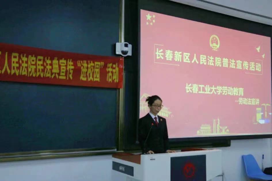 本次讲座由长春新区刘靖宇法官主讲,刘靖宇法官多方面,多角度分析了我国民法典出台的形势背景,并就民法典中家庭婚姻、劳动法等方面相关法律进行了详实讲解,向同学们展现了我国法律的严谨性、科学性,强调了运用法律武器维权的必要性与重要性,现场同学们反响热烈,掌声雷动。