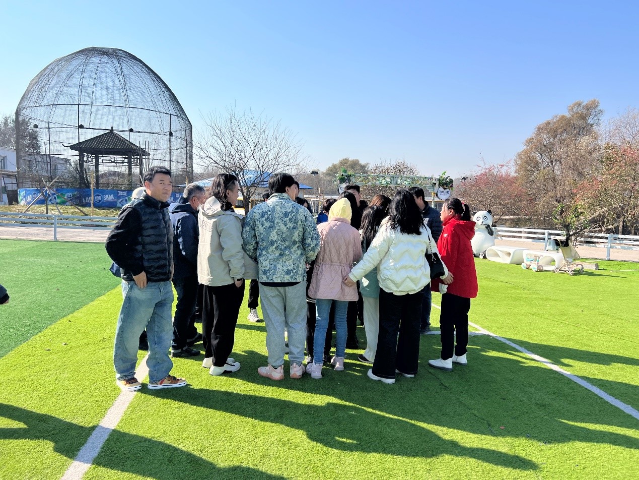 上午九时许,老师们在学校集合,满怀期待的乘坐大客车,一路欢歌笑语,对诗对歌,来到南关区净月鸿运山庄。开展了“大风吹”、“正话反说”、“数字抱团”等各项集体活动,每一项活动都是智慧与激情的精彩对决,在这一片绿意盎然、生机勃勃的地方,进行着一场集毅力、脑力、体力的较量,2025年秋游联谊活动就此正式拉开了帷幕。