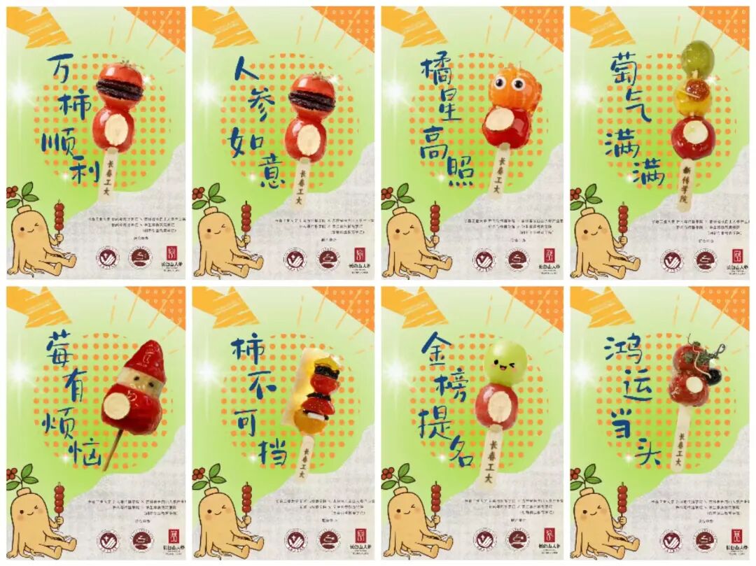 best365英国在线体育官网的师生们化身“文创匠人”,从食材甄选到造型设计全程亲力亲为。精选颗粒饱满的本地山楂,搭配营养价值丰富的长白山人参,经过去核、串制、熬糖、裹衣等多道工序,别出心裁的与人参蜜片、人参冻干片、人参花、人参粉、人参须等进行创意结合,制作出造型别致、酸甜可口的人参糖葫芦(人参如意)。除经典原味外,现场还推出了晴王葡萄(金榜题名)、丹东草莓(莓有烦恼)、圣女果(万柿如意)、砂糖橘(橘星高照)、奶皮子等创新口味,这些口味不仅满足了不同师生的味蕾需求,更饱含着学院对广大师生特别是即将踏上征途的考研同学们的真挚祝福。更有师生发挥专业特长,在糖葫芦包装上融入best365英国在线体育官网等相关元素,制作出兼具纪念意义与观赏价值的文创设计,让小小的糖葫芦成为承载校园文化的移动名片。