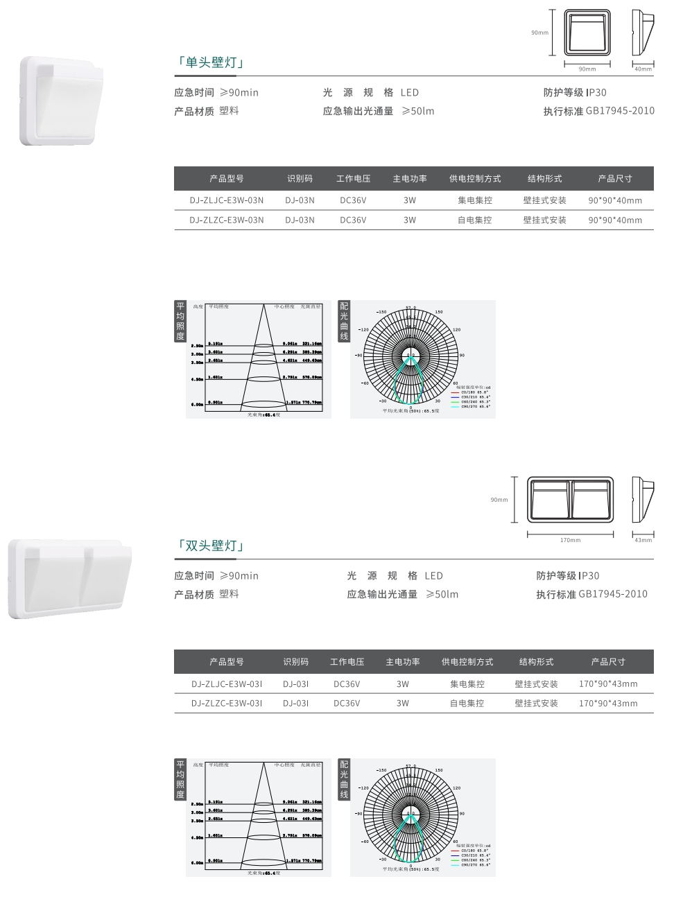 DJ-ZLJC-E3W-03N集电集控/自电集控单头壁灯