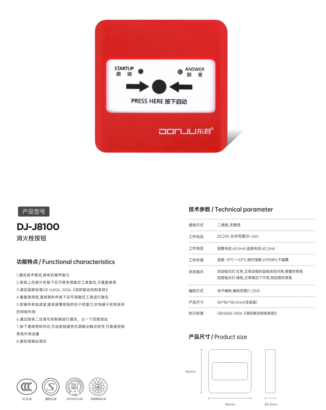 J-SAP-M-DJ8000手动火灾报警按钮(电话孔)