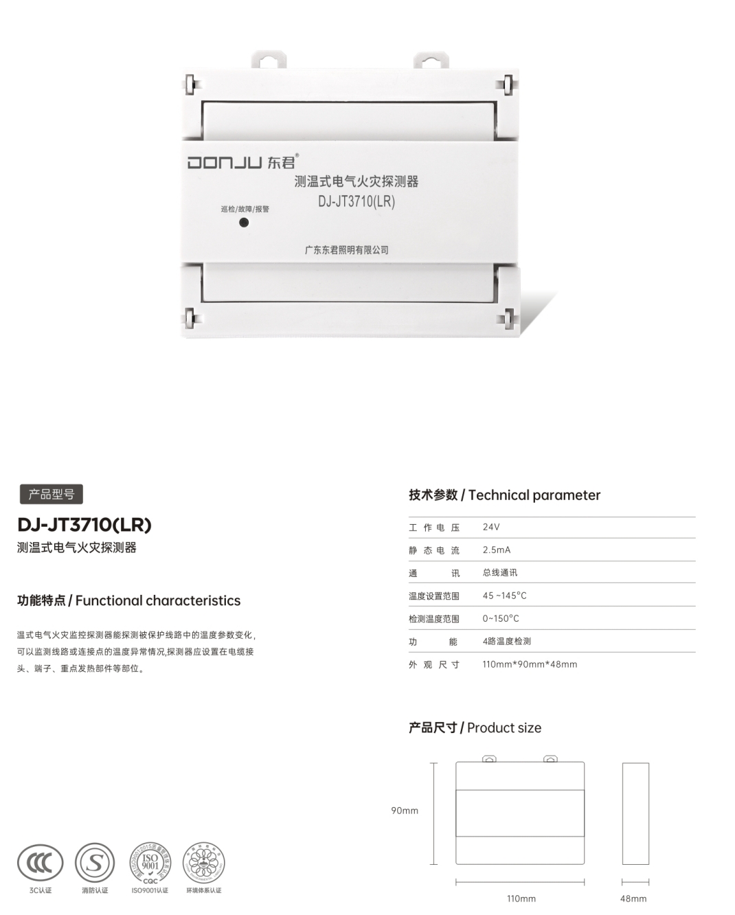 DJ-JT3721(LR)剩余电流式电气火灾探测器
