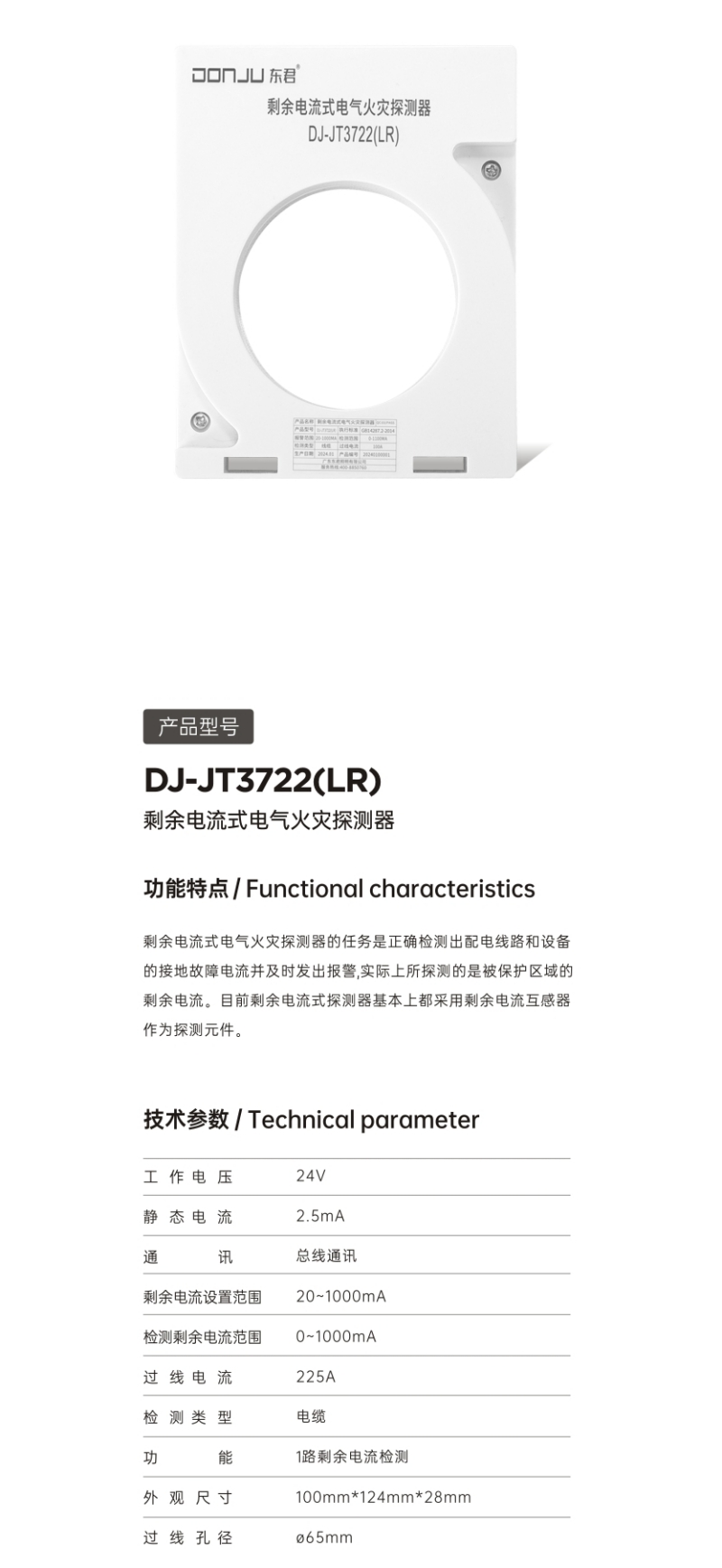 DJ-JT3721(LR)剩余电流式电气火灾探测器